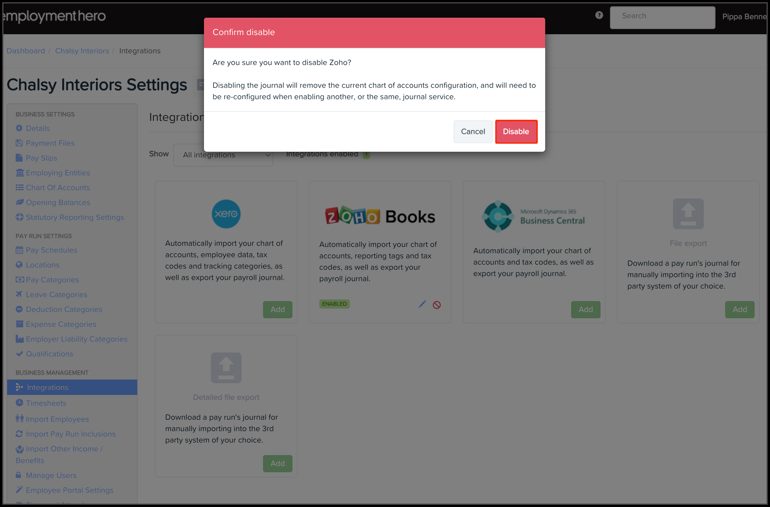 A journal service is a tool that allows you to connect your accounting software with your payroll platform so that you can capture journal entries in your chart of accounts. If you use Zoho for your accounting software and journal service, and Employment Hero for your payroll, you can simply connect Zoho with your Employment Hero Payroll platform via the Journal Service integration feature.