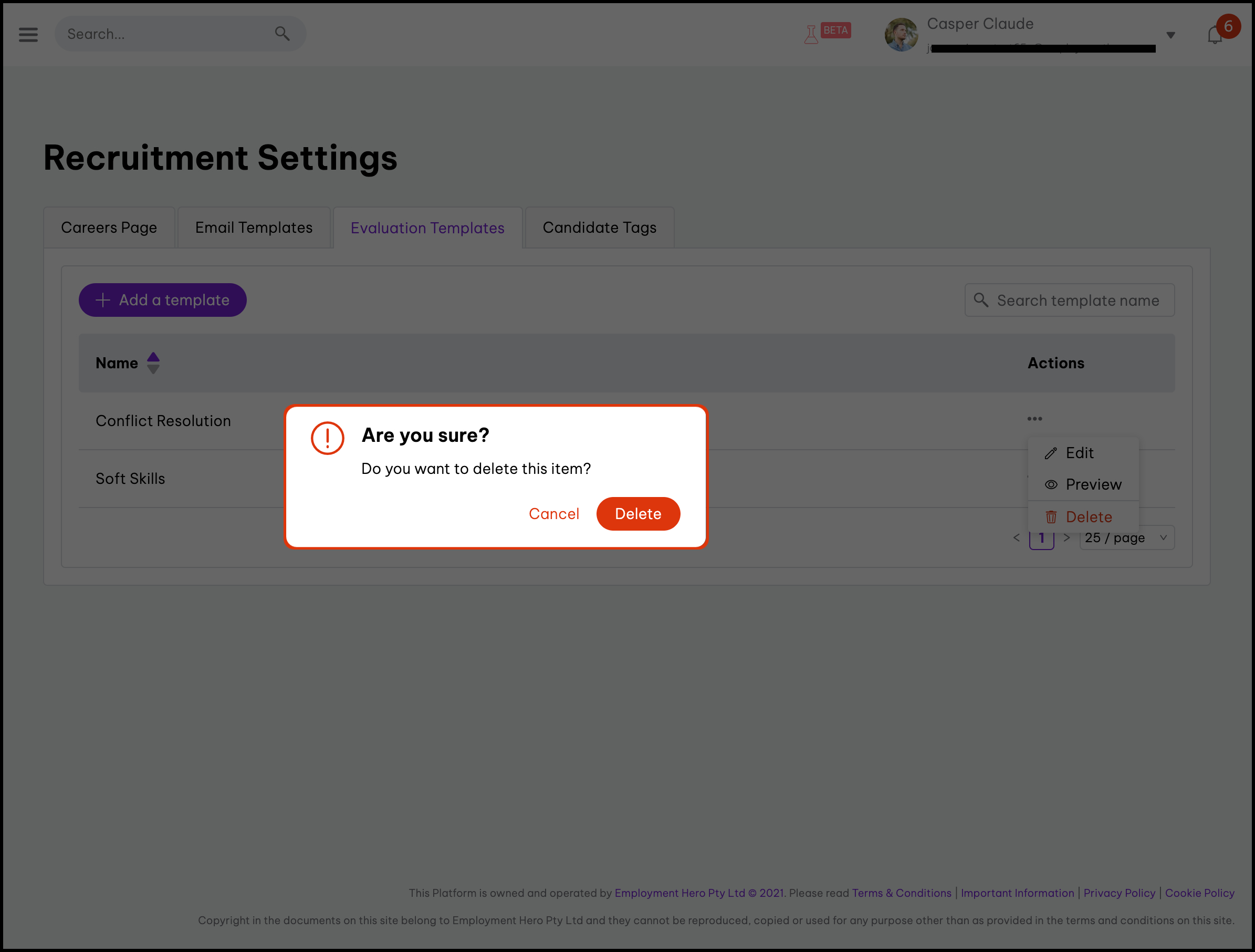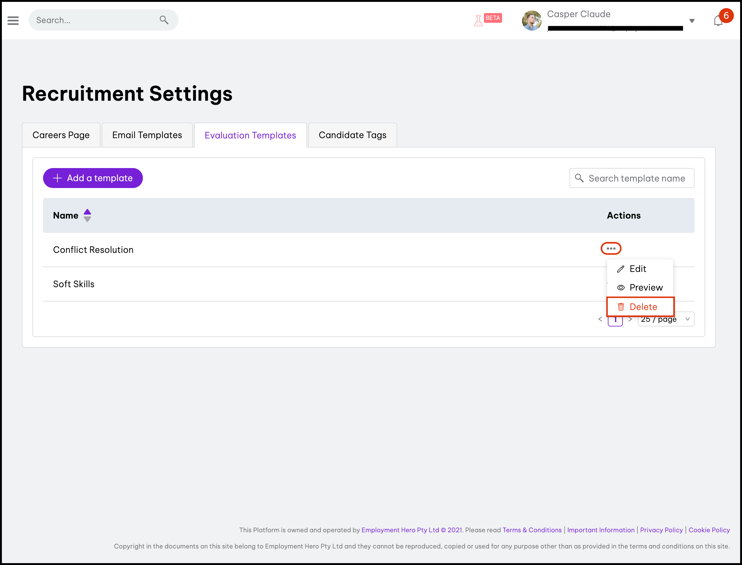 Delete an evaluation template