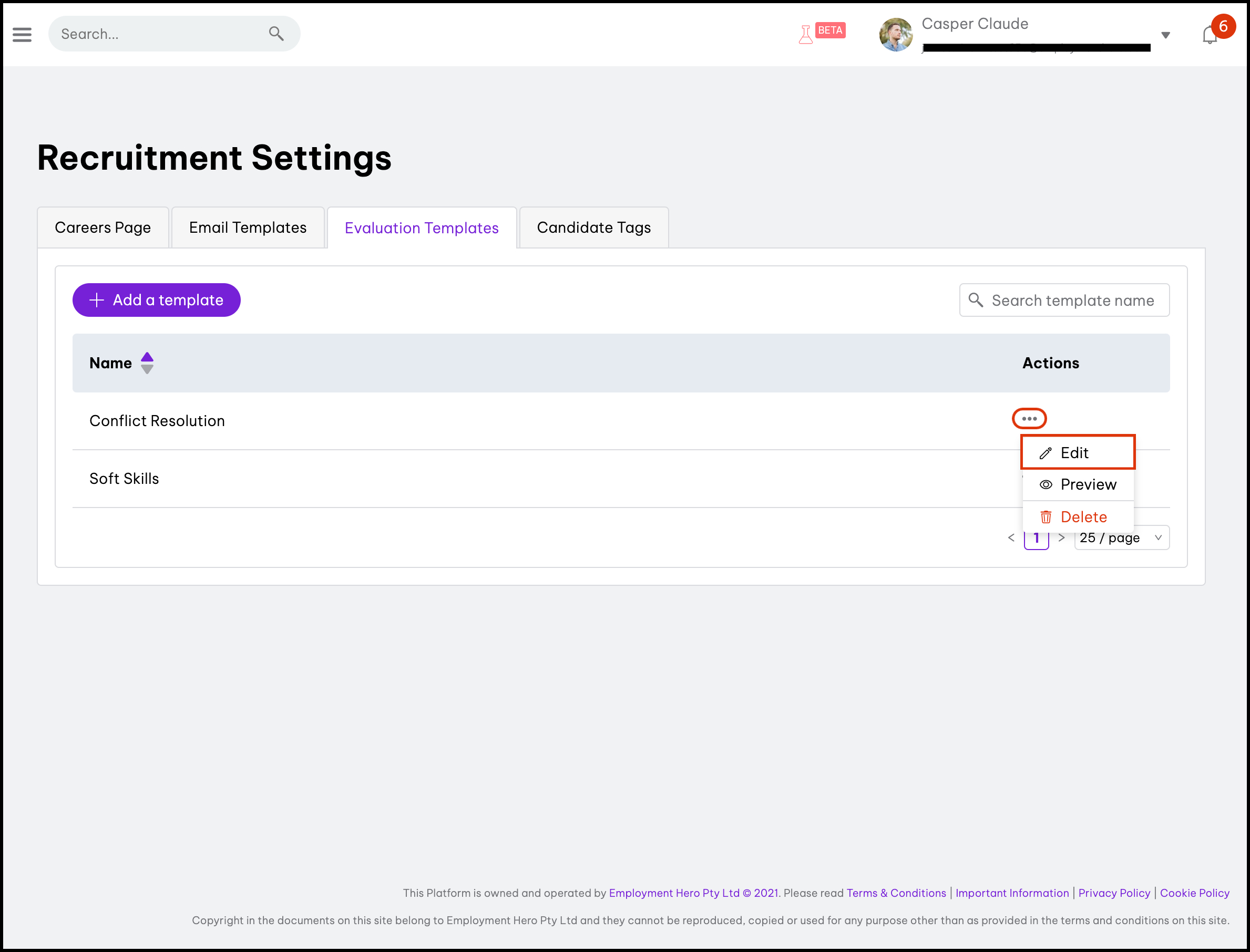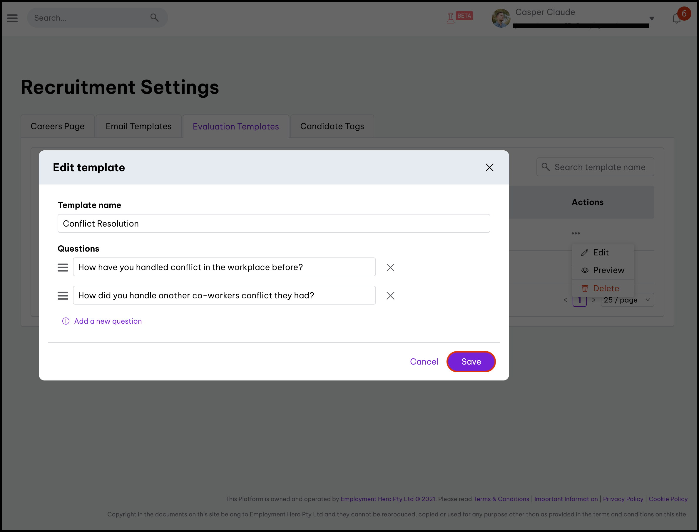 Setting up recruitment evaluation templates