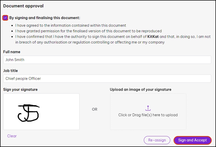 - Once you have filled in the required fields, click the Sign and Accept button.