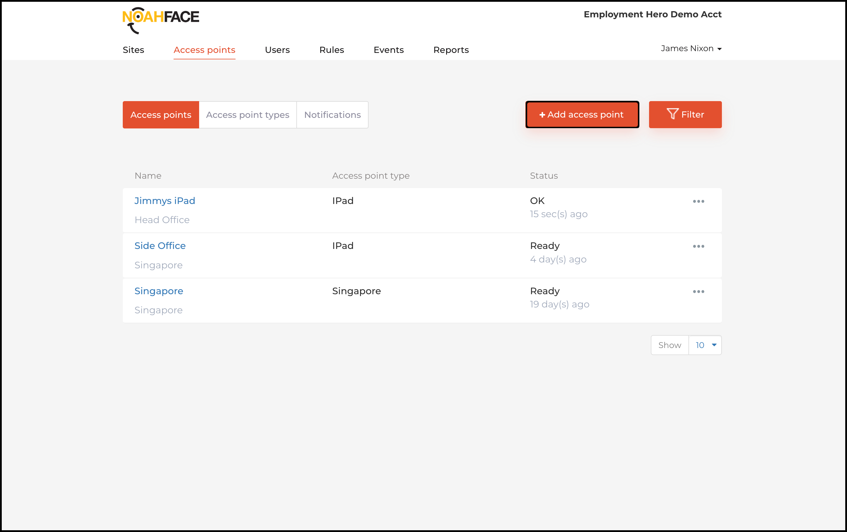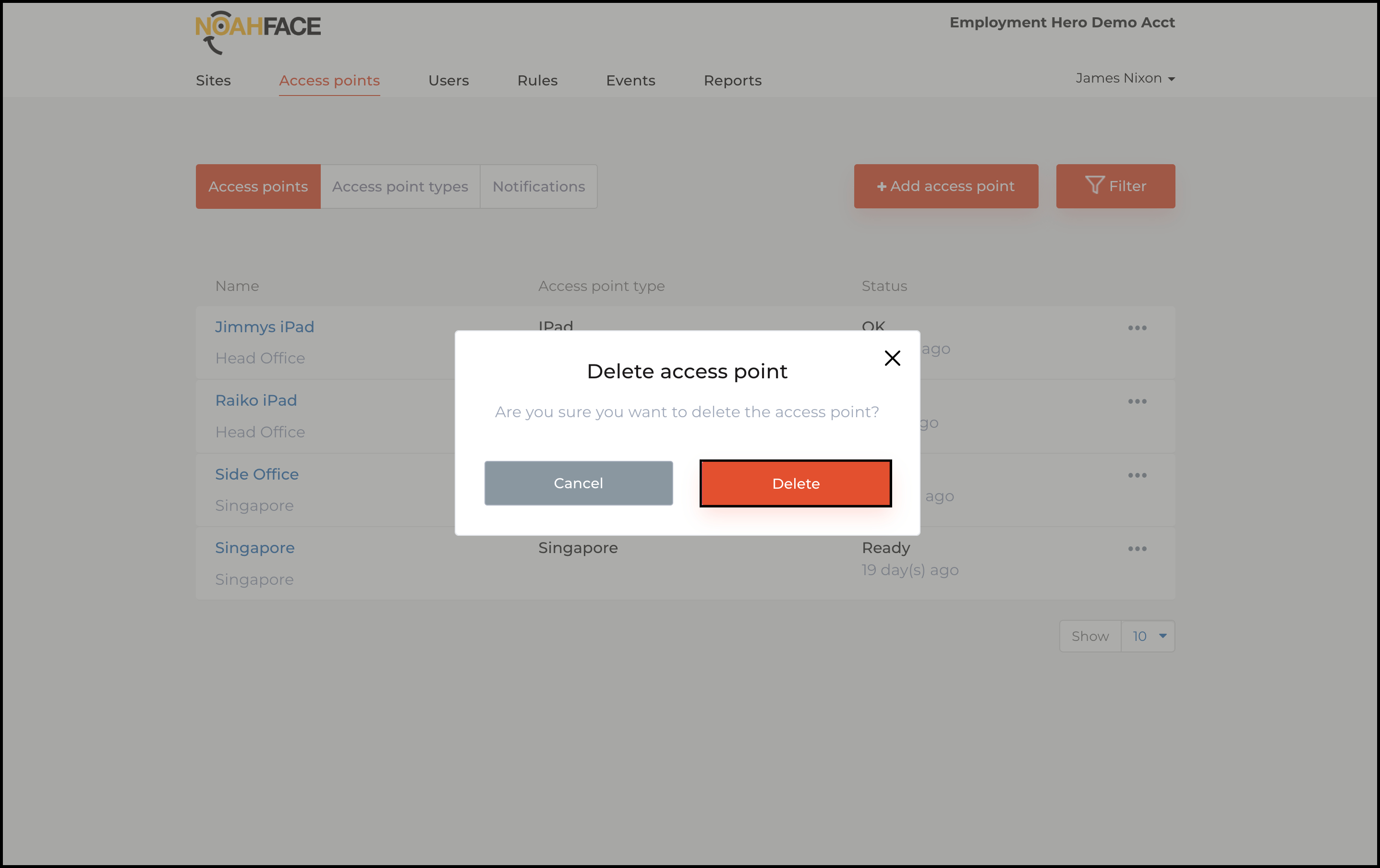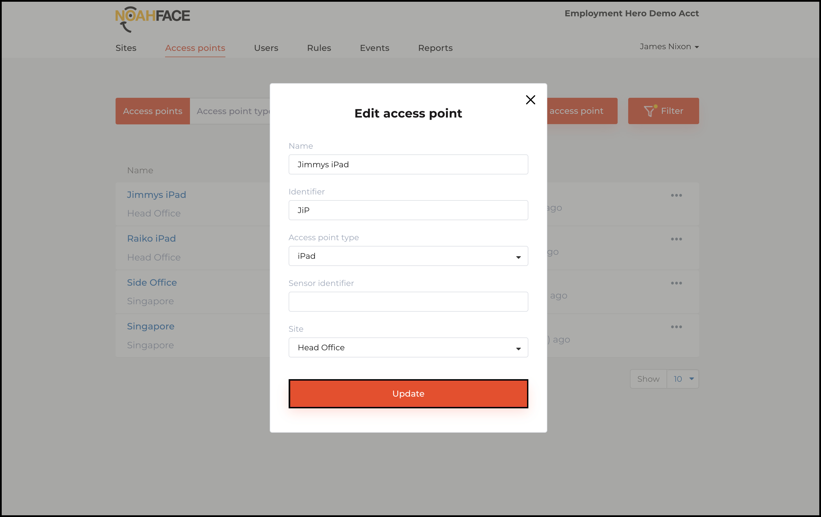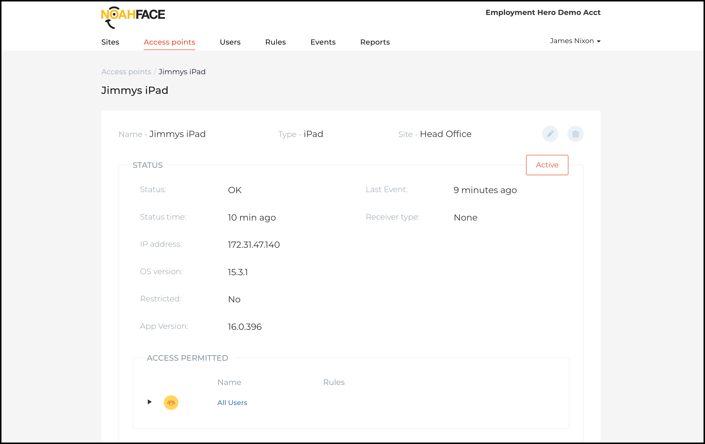 The Access Points Management feature allows you to create a new access point, complete details such as its name, identifier and site name along with setting up whether you can use it via the iPad app or not. You can also use this feature to edit the details if the need updating, and archive and/or delete an access point you no longer need.