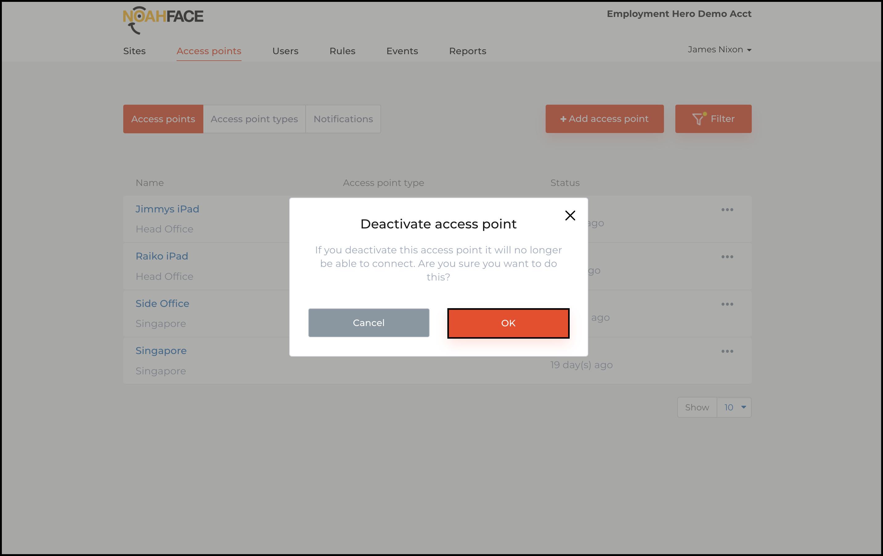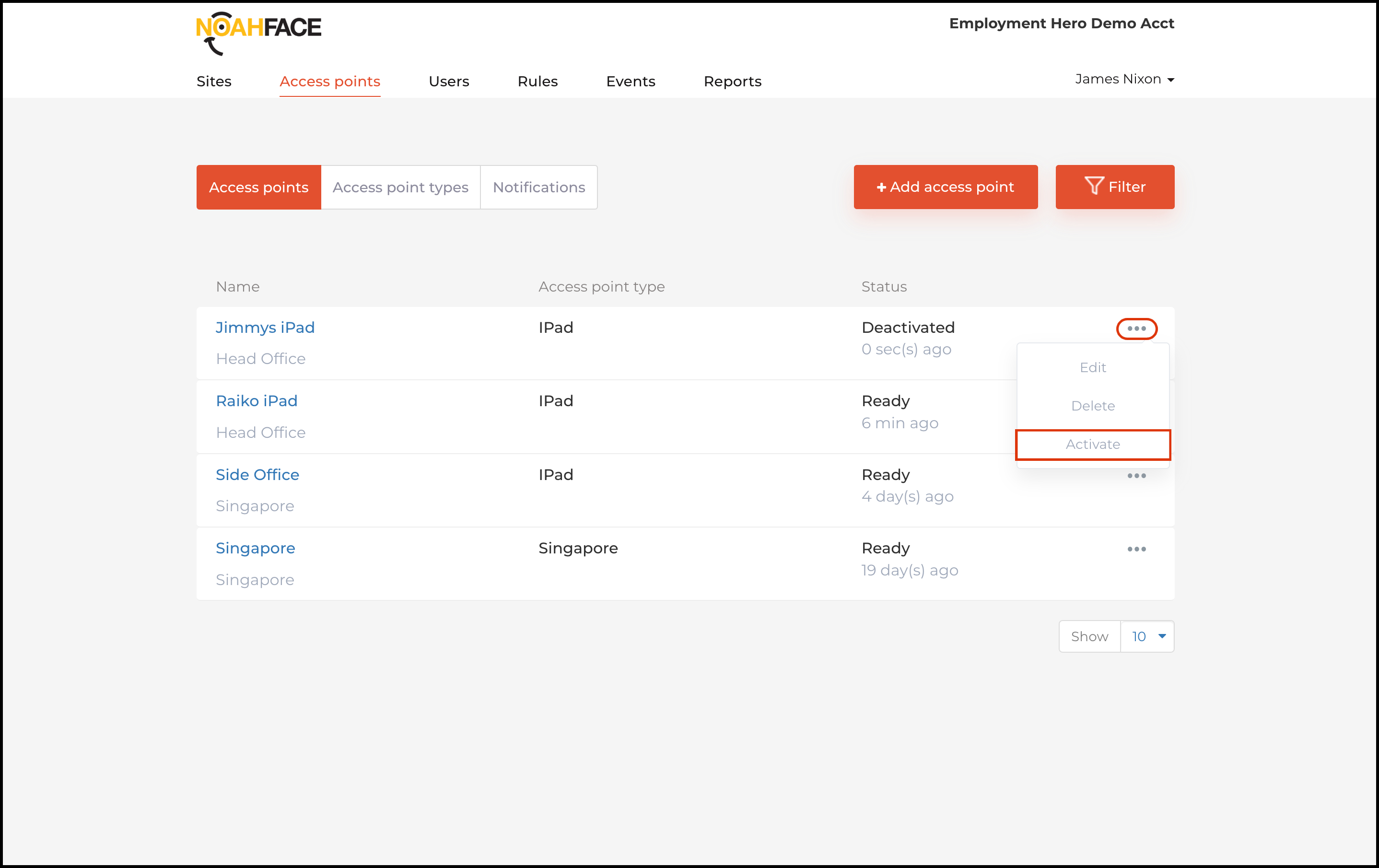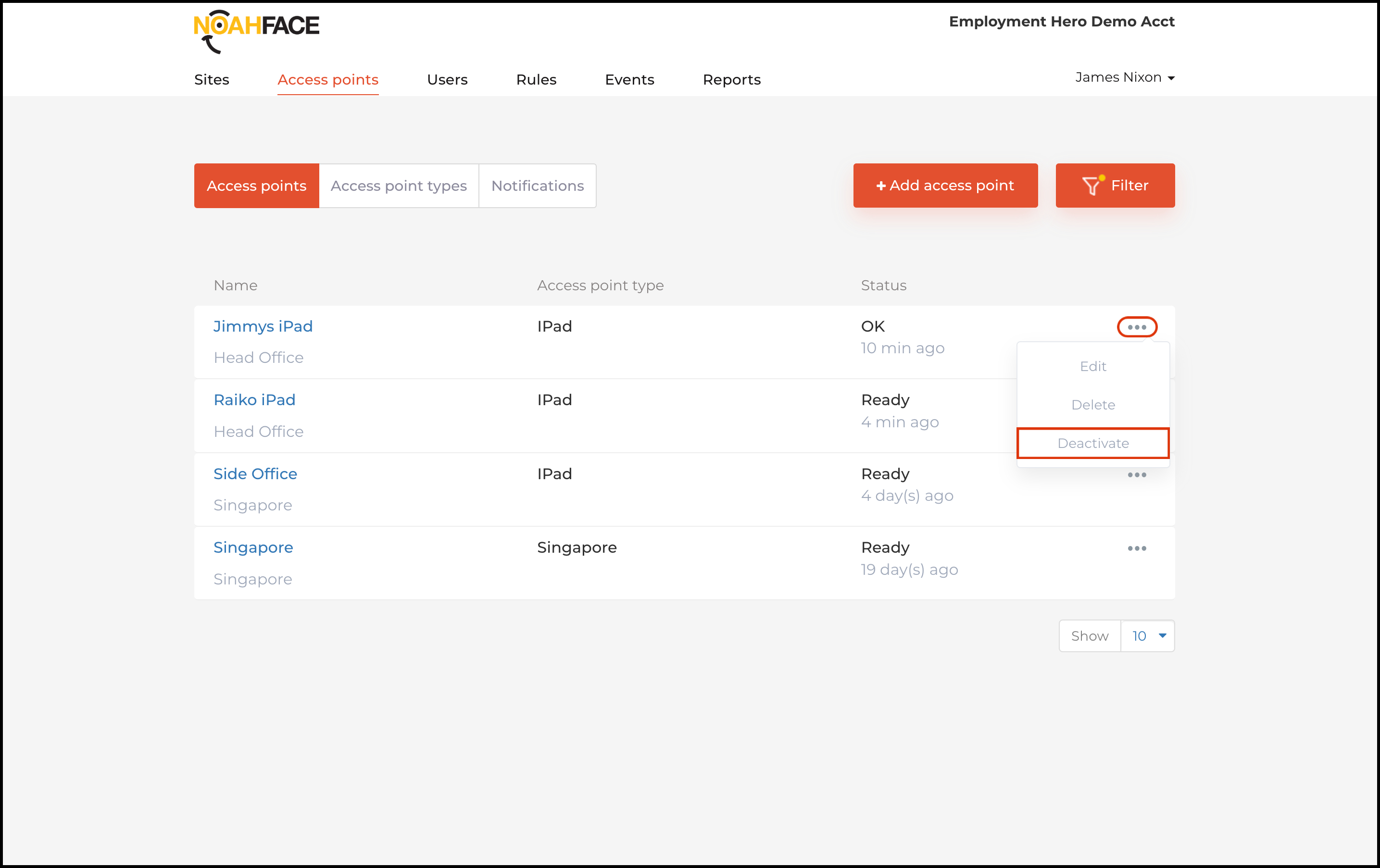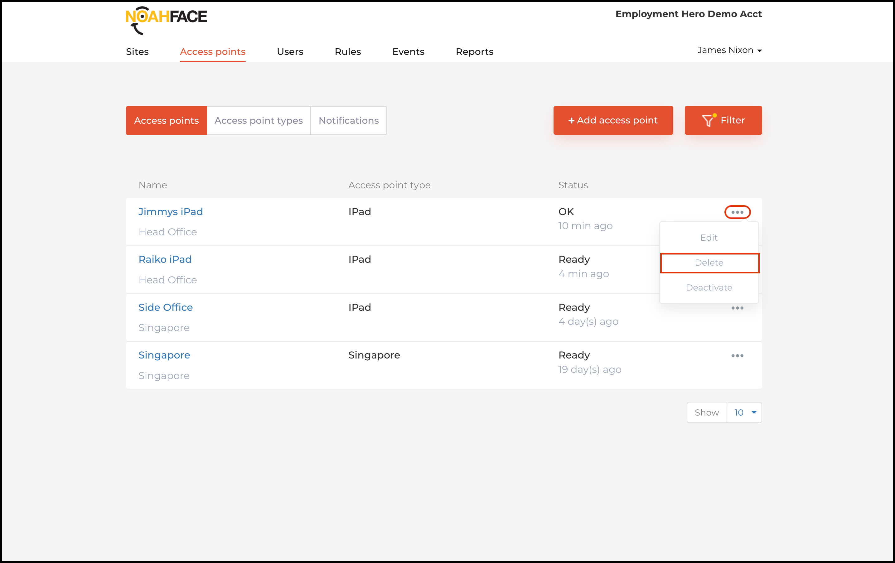 The Access Points Management feature allows you to create a new access point, complete details such as its name, identifier and site name along with setting up whether you can use it via the iPad app or not. You can also use this feature to edit the details if the need updating, and archive and/or delete an access point you no longer need.