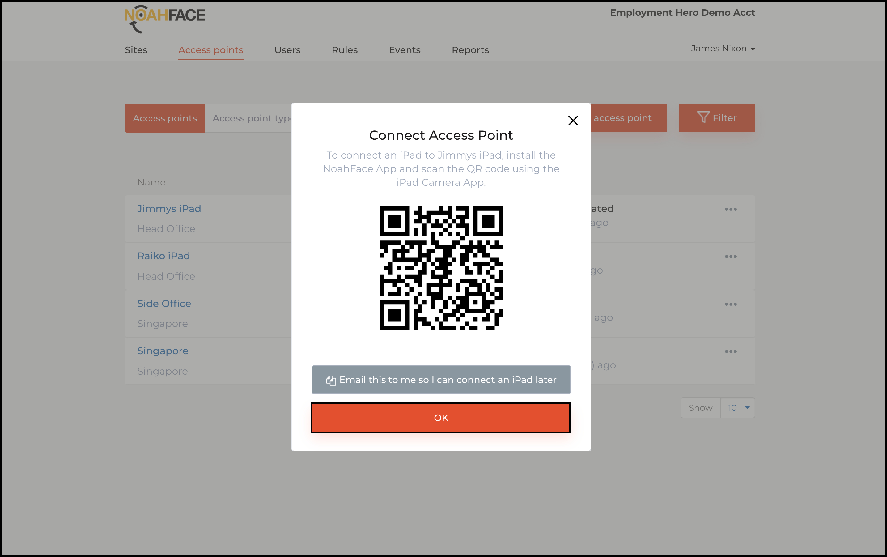 6. If you selected the iPad access point type, scan the QR code on your screen with your iPad to connect your web platform with your iPad app.