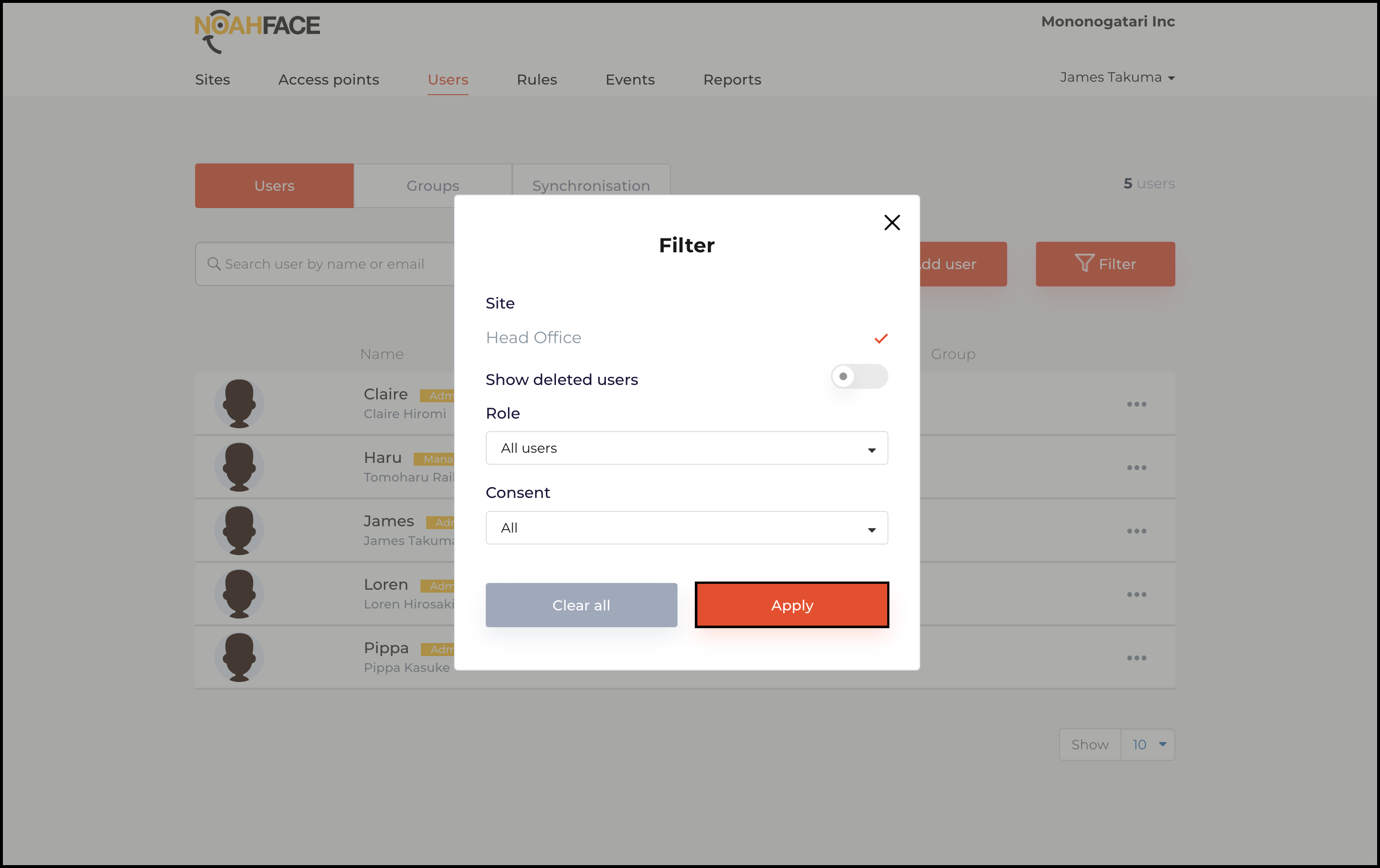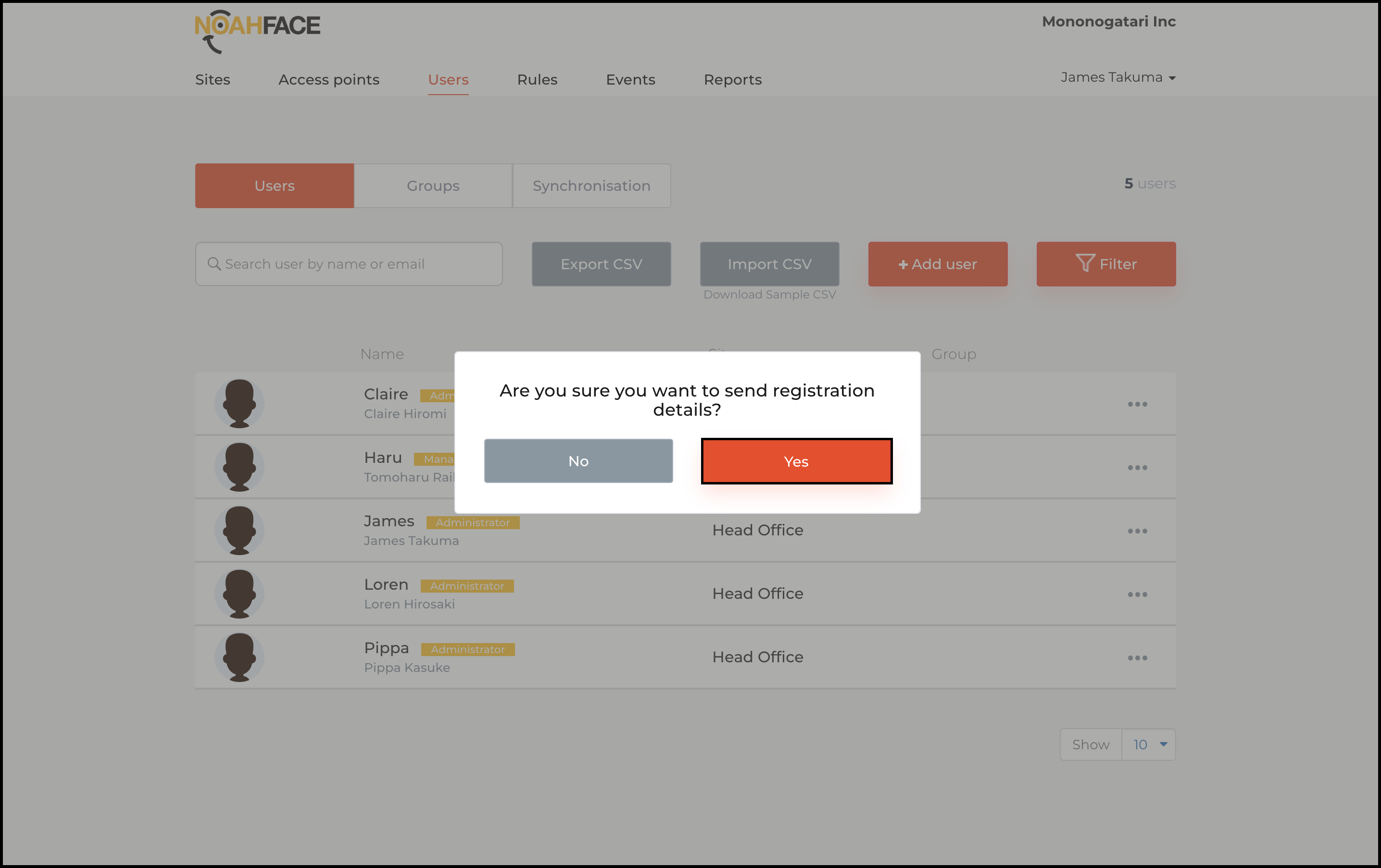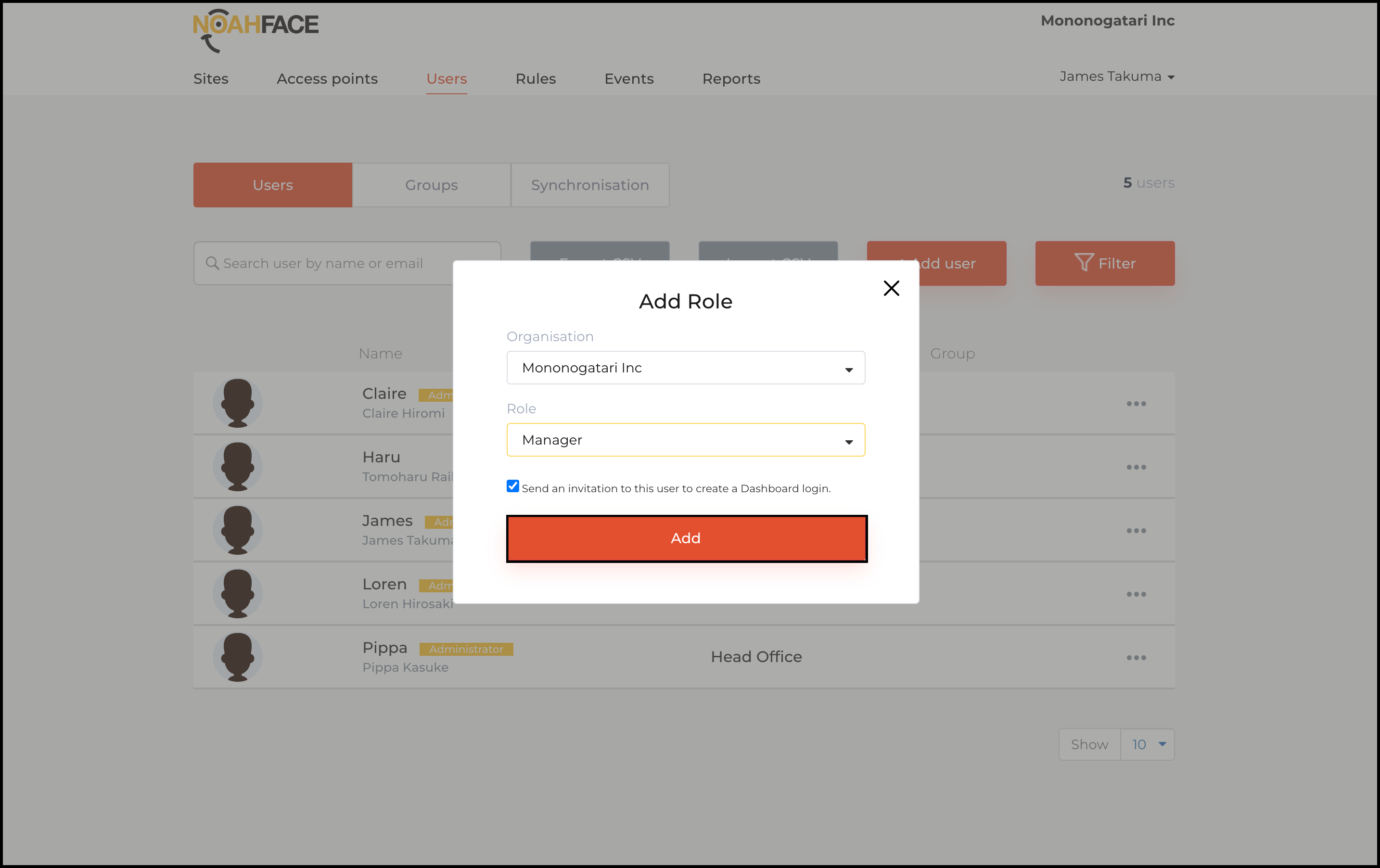- Log into your Noah Face web platform.