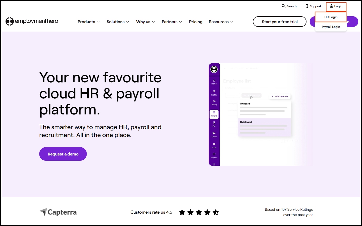 - Go to the Employment Hero website.