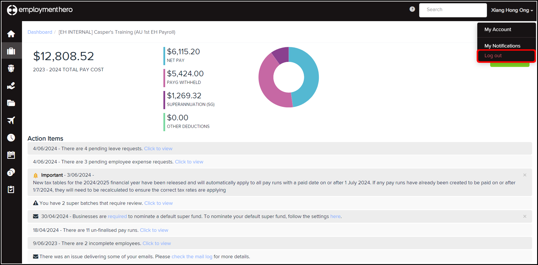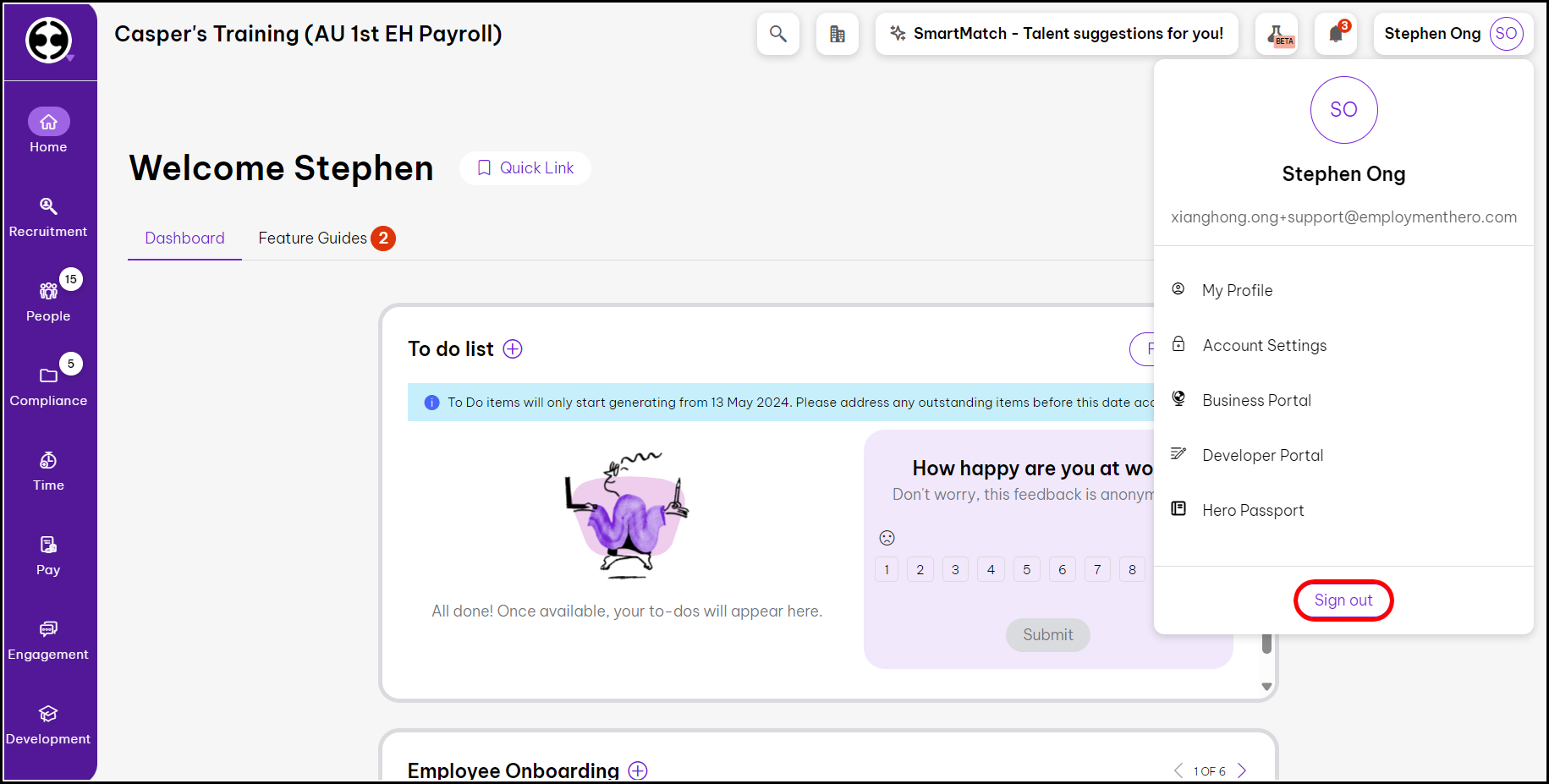 Sign out of Employment Hero's HR and Payroll platforms