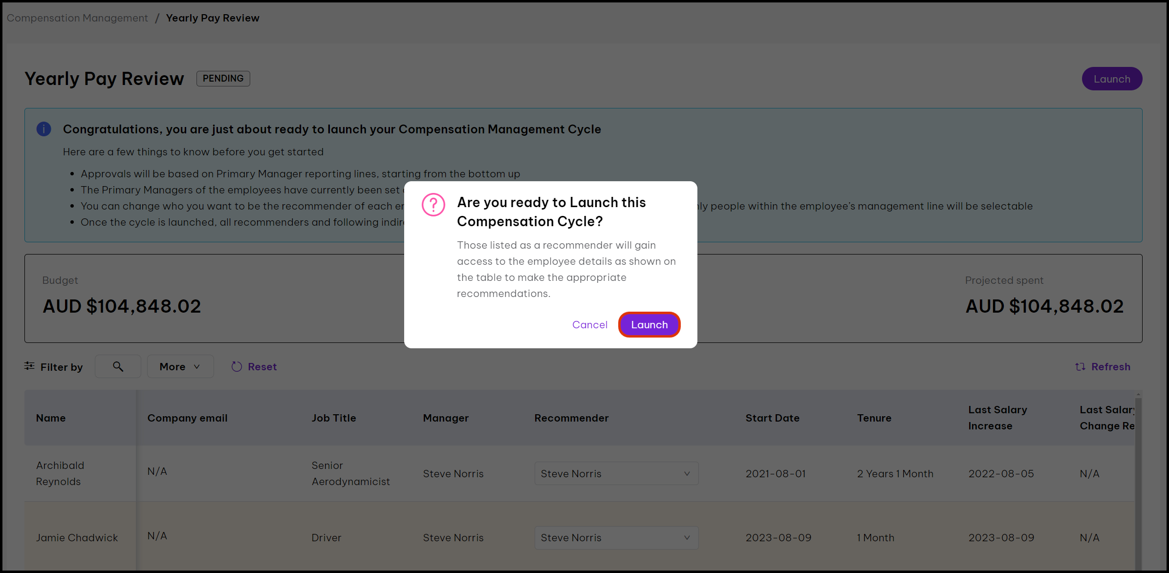 The Compensation Manager feature allows you to manage salaries, bonuses, and benefits in one location. By using the Compensation Manager, you can make sure that any compensatory changes are managed fairly and effectively. The feature is currently on a pre-release trial; further details regarding the full release will be announced soon.