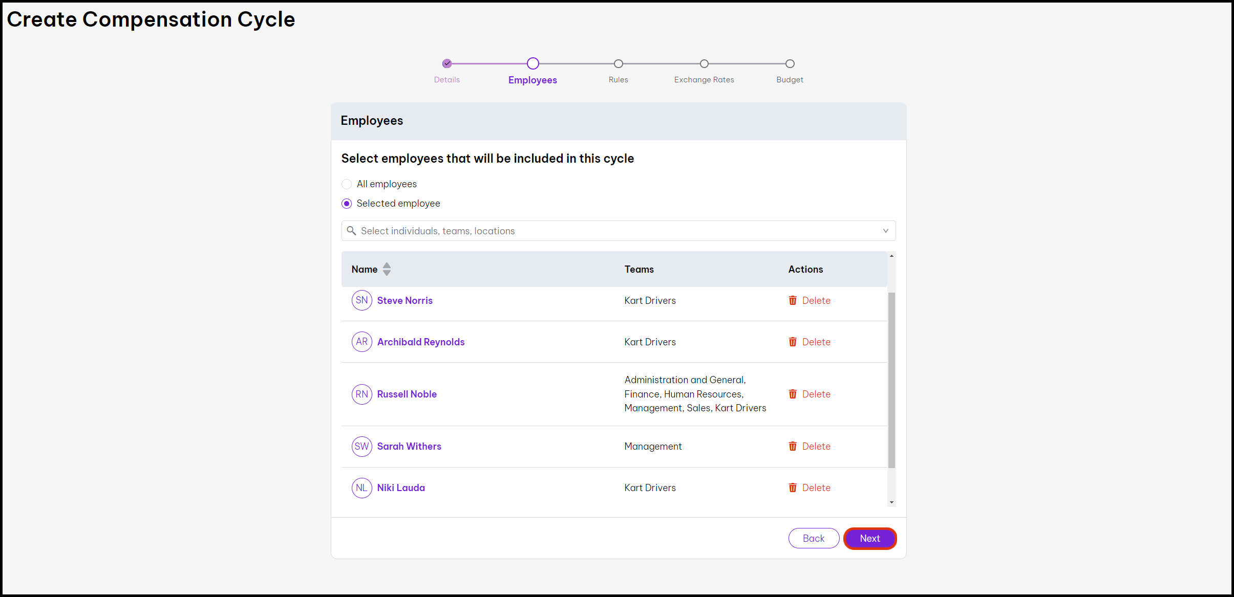 - Select the allocated/additional budget for the compensation review, based on the employees selected.