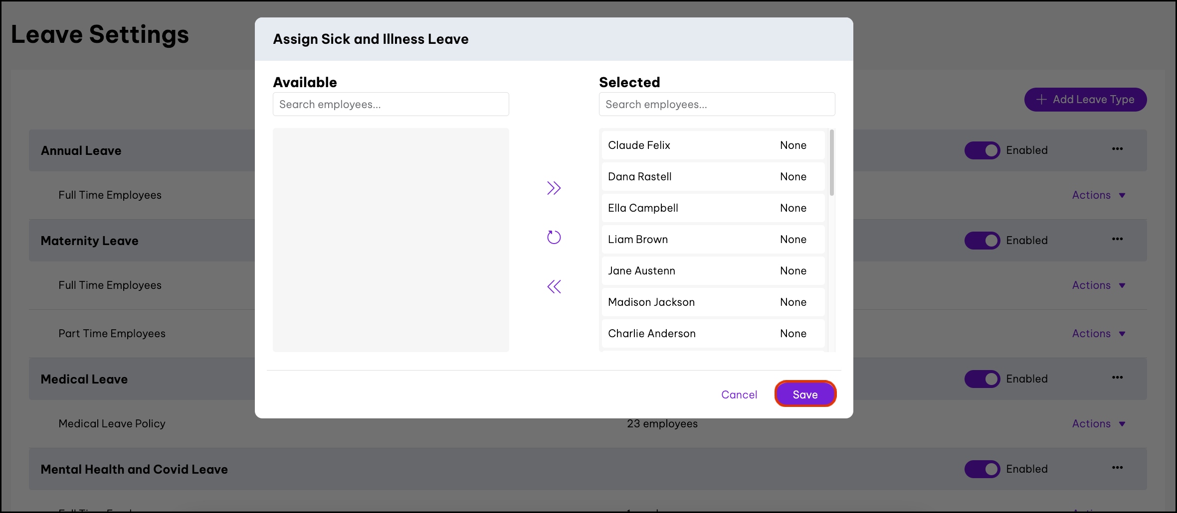 You can set up an optional toggle to record the reason for absence for an employee who has taken sick leave. This data feeds into a Sickness Report for increased leave details and forecasting. It shows the types of leave taken, and common days on which leave is taken.