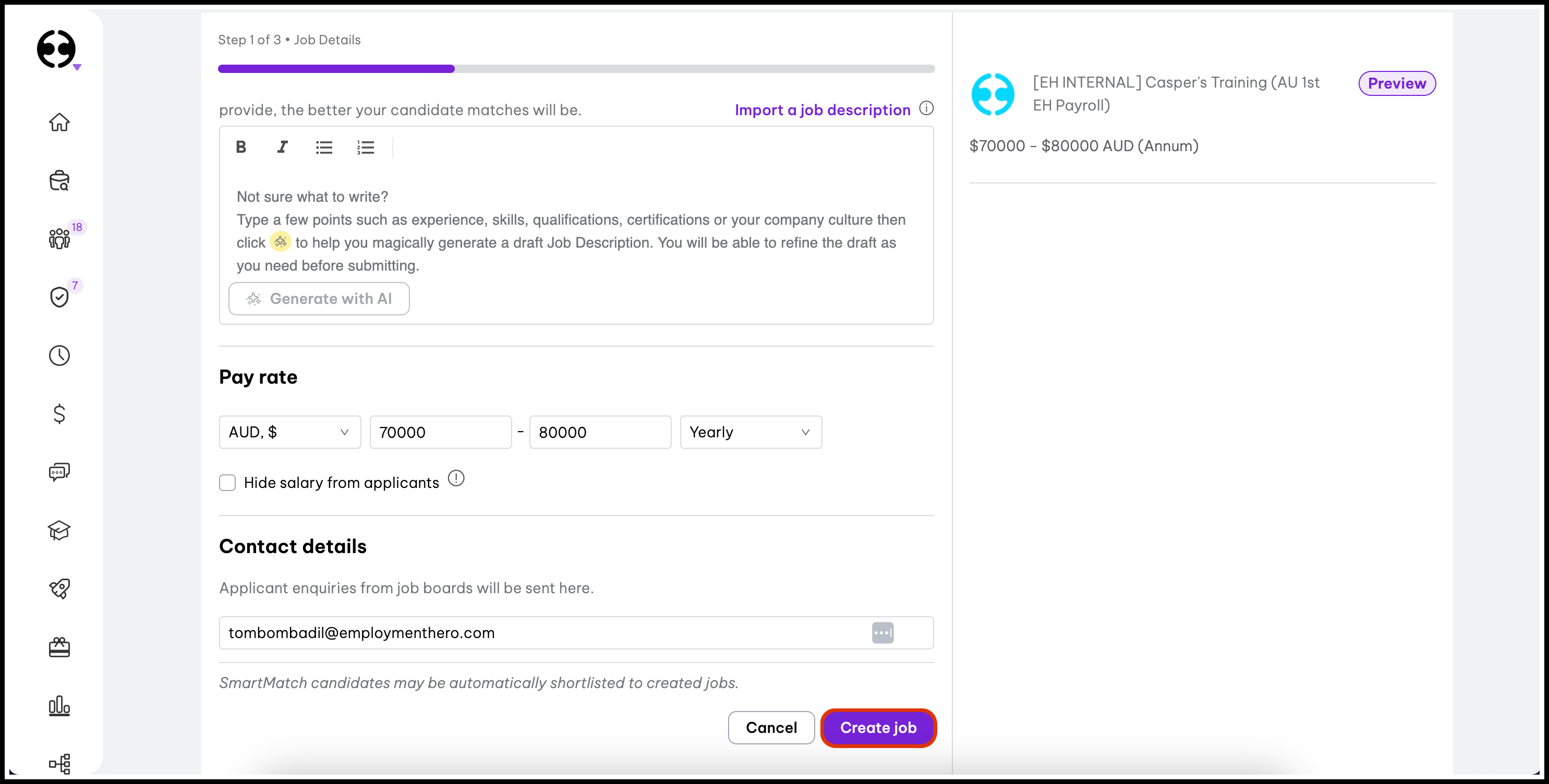 - Live job preview - See exactly how your job post will appear to candidates as you create it