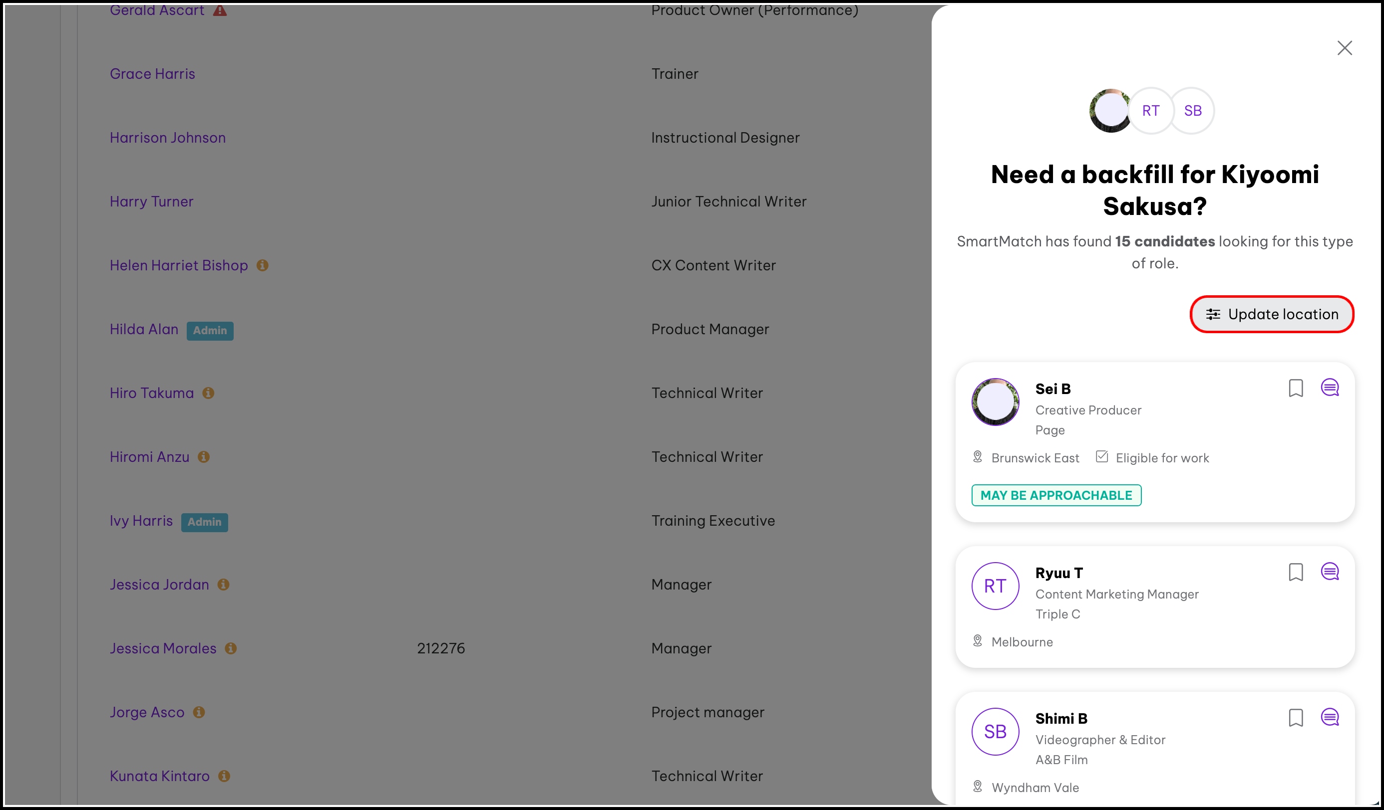 How do I use SmartMatch to look for candidates to replace a terminated employee/offboarded employee or someone who will be leaving the organisation?