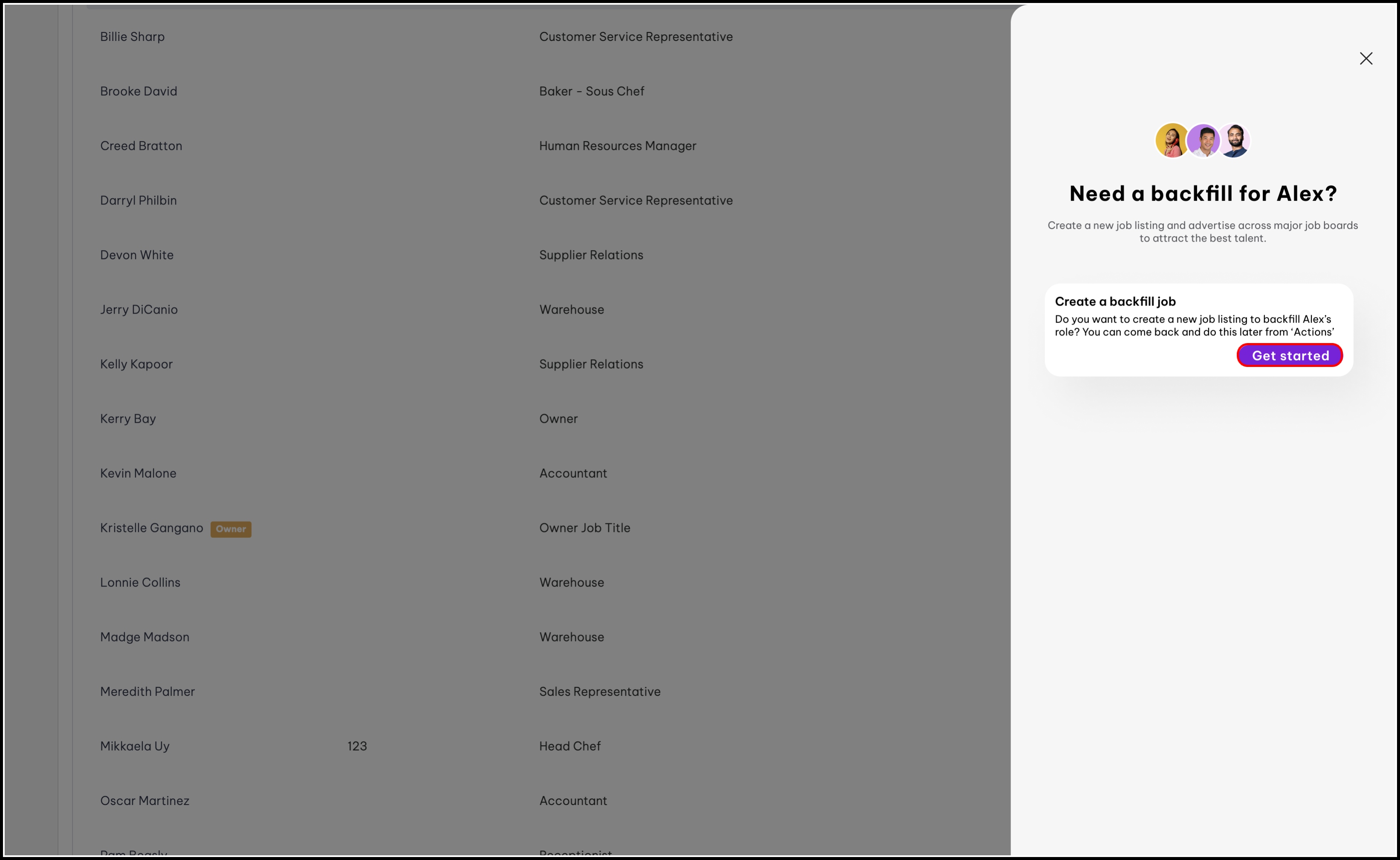 - If you choose not to create a backfill role advert when you are offboarding the employee, you can do this retroactively: