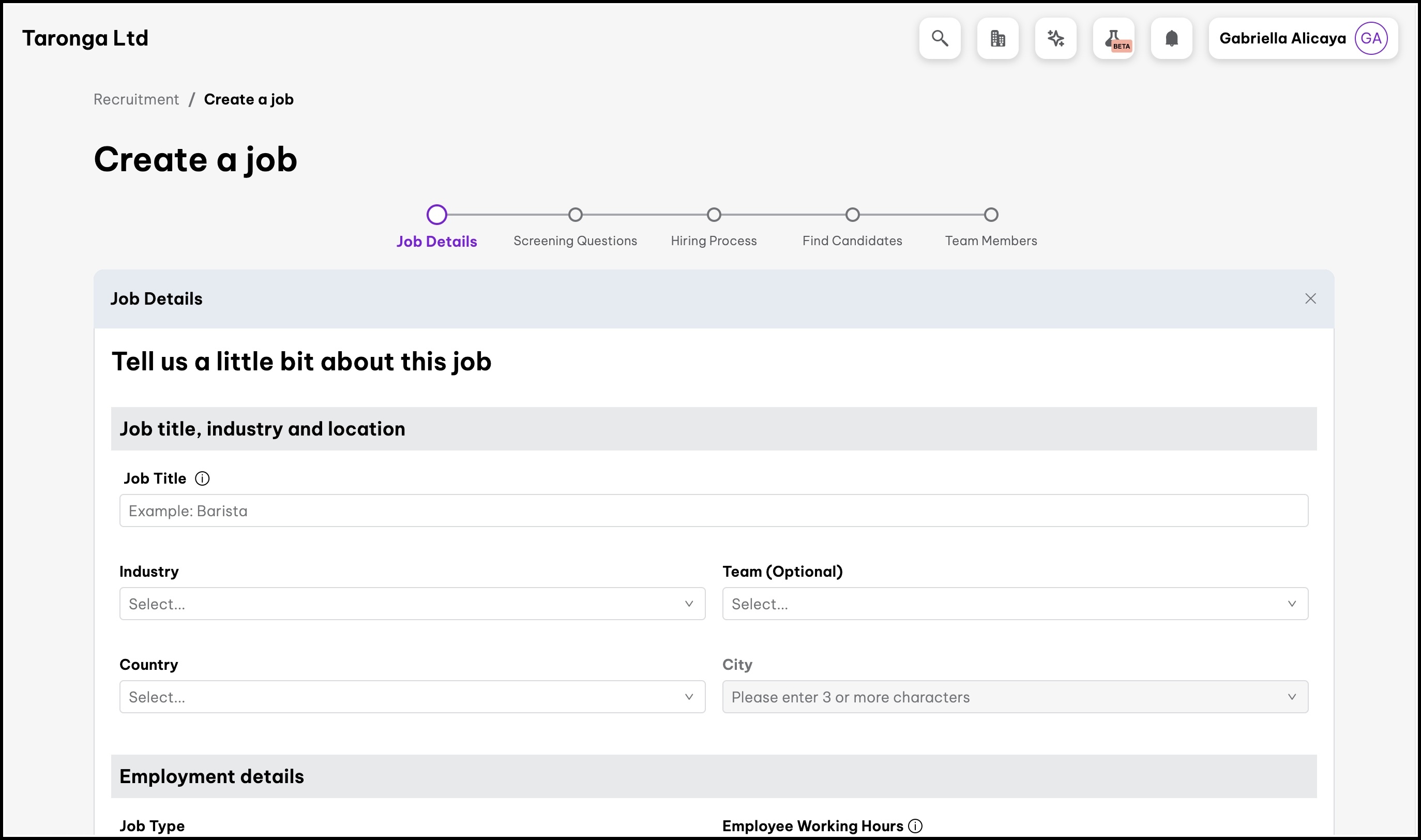 - If you choose to create an advert, this will open the Create a Job screen, where you will need to enter the required details.